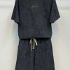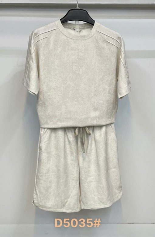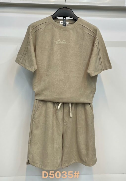 Thiết kế: Áo thun cổ tròn phối quần short cùng chất liệu, logo thêu tinh tế ở ngực tạo điểm nhấn sang trọng.