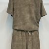 📌 Thiết kế: Áo thun cổ tròn phối cùng quần short dây rút, form rộng thoải mái, dễ dàng hoạt động.